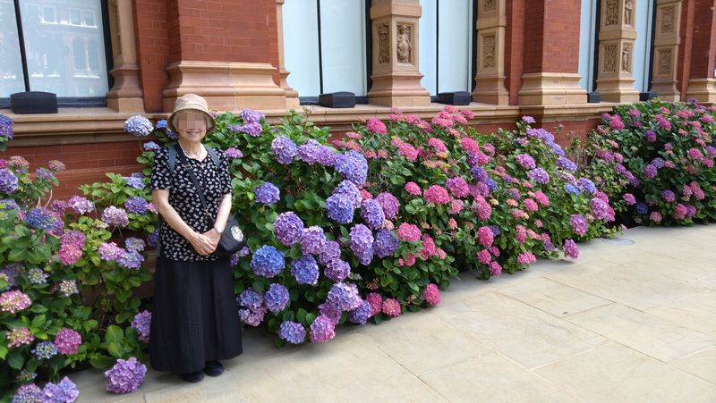 ダビデ像は, 5メートルを超えるので, 高い台座に乗せて置かれるので, 下から眺めると, その際にバランスよく見えるように, 上半身を大きくしたとのこと. 確かに, 2階から眺めるとバランスが悪い. 余談だが, 2階から眺めた後, 1階から見ようと思って係の人に場所を訊ねると言葉が通じない. 私が, 「ダビデ」と言ったのが間違いだった. David(デイビッド)だと通じたと思った. 美術館の外のあじさい