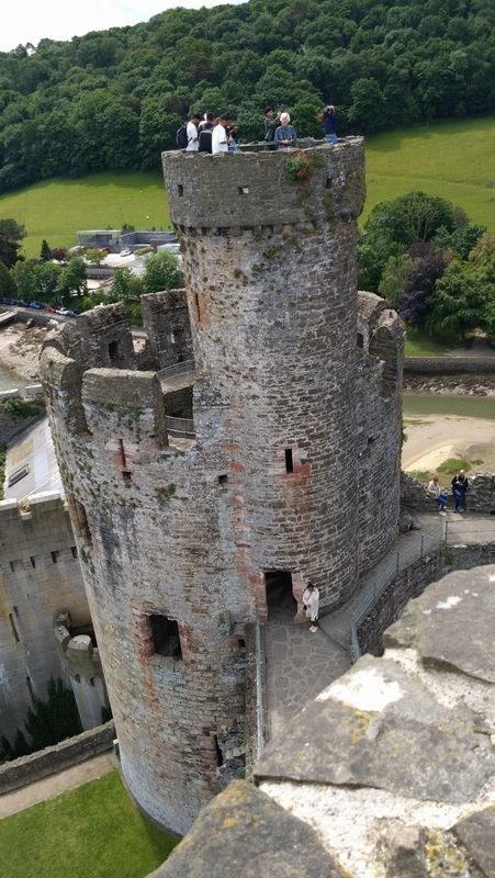 コンウィ, コンウィ城 ホテルの朝食は, すばらしく, メニューに希望の項目(ソーセージやベーコン, 卵, etc)にチェックを入れて, 希望のメニューで提供してくれた. 前日は余裕があったので, フルメニューに近い形だったが, 今日は, 9:00の列車に乗る必要があり, 少なめに注文した. Chester 09:00 → Llandudno Junction 09:49 (Transport for Wales) Llandudno Junction(うまく発音できない 「スランディドノ」と言っているようだ ウェールズ語かも)で, バスに乗って, Conwyに行くルートだったが, バス停がどこにあるのか分からない. 検索すると, 駅から少し歩いて住宅街の中にあるようで, そこまで歩いていく. 待っていてもバスが来ない. 検索すると, Cowyまでは, 1マイル(1.6km)とのことなので, 仕方なく歩く. Llandudno からConwyまでは橋を渡る. 手前が, Llandudnoで向こう側がCowy. 橋は, コヌイ川にかかっており, およそ500m ホテルに荷物を預けて, 観光を開始する. 当初は, Llandudnoの南の, ポドナンドガーデンを見物する予定で, 観光案内所でバスの時刻を訊いたら, 今日は日曜で, バスは運休とのこと. 急遽予定を変更して, 予約していたコンウィ城の見物からスタートした. 城壁の中に入ったところ. これから内部を見物. ところどころに塔があり, 登れるようになっている. 下の写真は, 私が登ったもの. 同時に, 隣の塔に家内が登り, 私のWiFiをテザリングして, 互いにLineで通話. カメラのGPS情報から, たぶん, 下の図の右端のChapel Towerに家内がいて, 私がKing's Towerにいたのではないかと思う. 城を出て, 市内見物. この日は, 風が強くて帽子が飛びそうになった. この日の最低気温 11℃, 最高 16.5℃ 涼しくて, 薄い上着を着た. 小さな町で, 1時間もすれば一回りできそうである. 左右に店がならぶ細い一方通行の道を, ウィンドゥショッピングしながら歩いた. 下の写真は, 教会か墓地 市内を何度か回りきって, 食事をしようと思ったが, レストランが開くのはもう少し後のようなので, ホテルのレストランで夕食を取ることとした. 何度か, 夕食の予約をしないかとメールをもらっていたが予約してなかった. 頼むと, レストランとは別の部屋に案内されて, 写真のような夕食をとった. 特に, 小さなイワシのような魚のから揚げが美味しかった. 表紙に戻る 前日 6月21日(土) ポントカサステ水路橋 翌日 6月23日(月) ポドナンドガーデン → ロンドン |